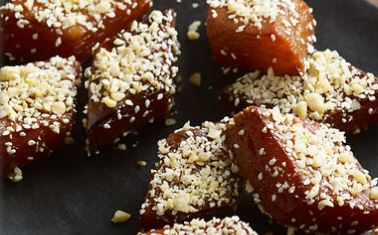 Remove pastries with a slotted spoon, discarding syrup, and transfer to a tray lined with baking paper. Scatter over pine nuts and sesame seeds to serve. Pastries will keep in an airtight container for up to 3 days.