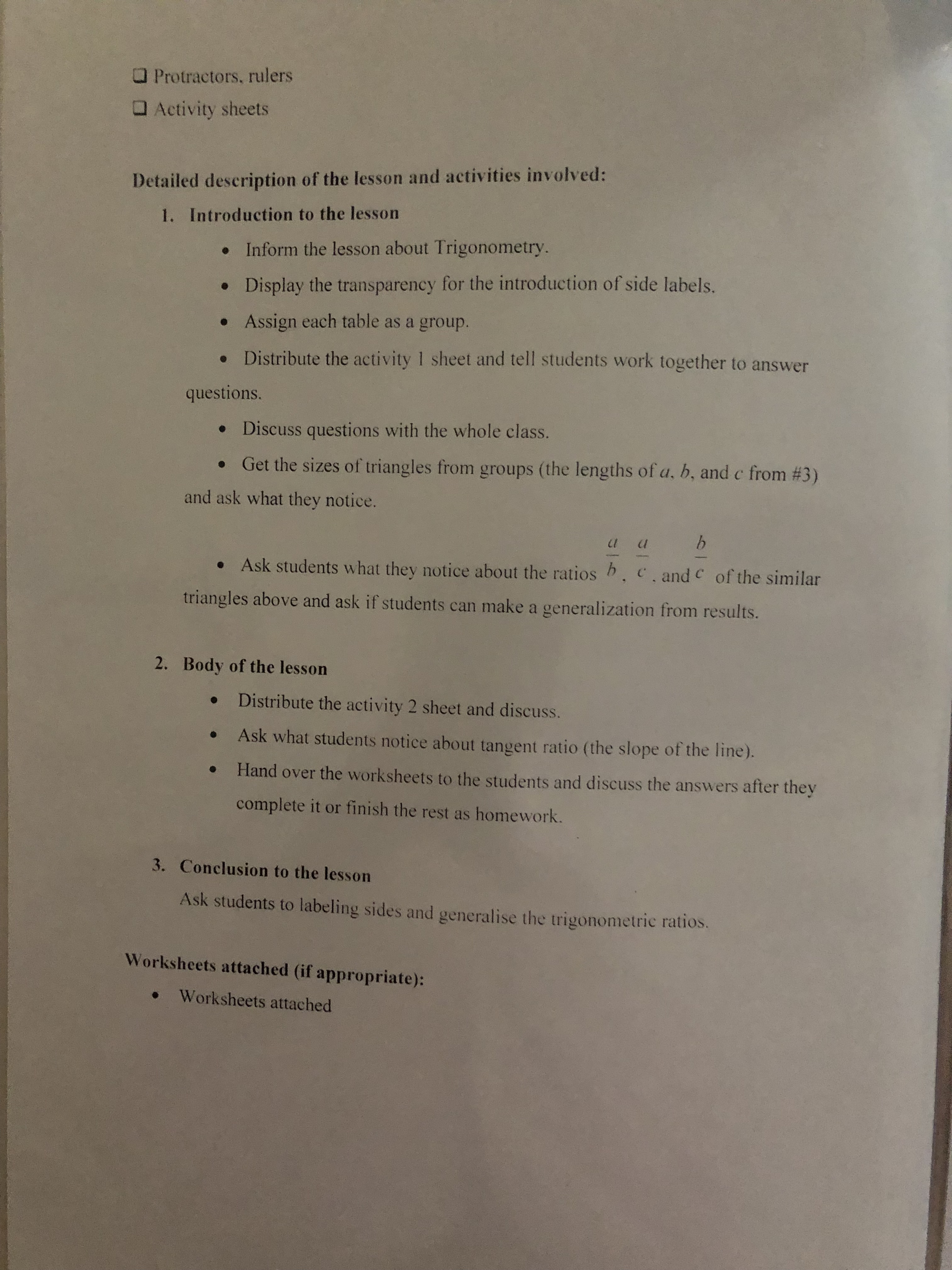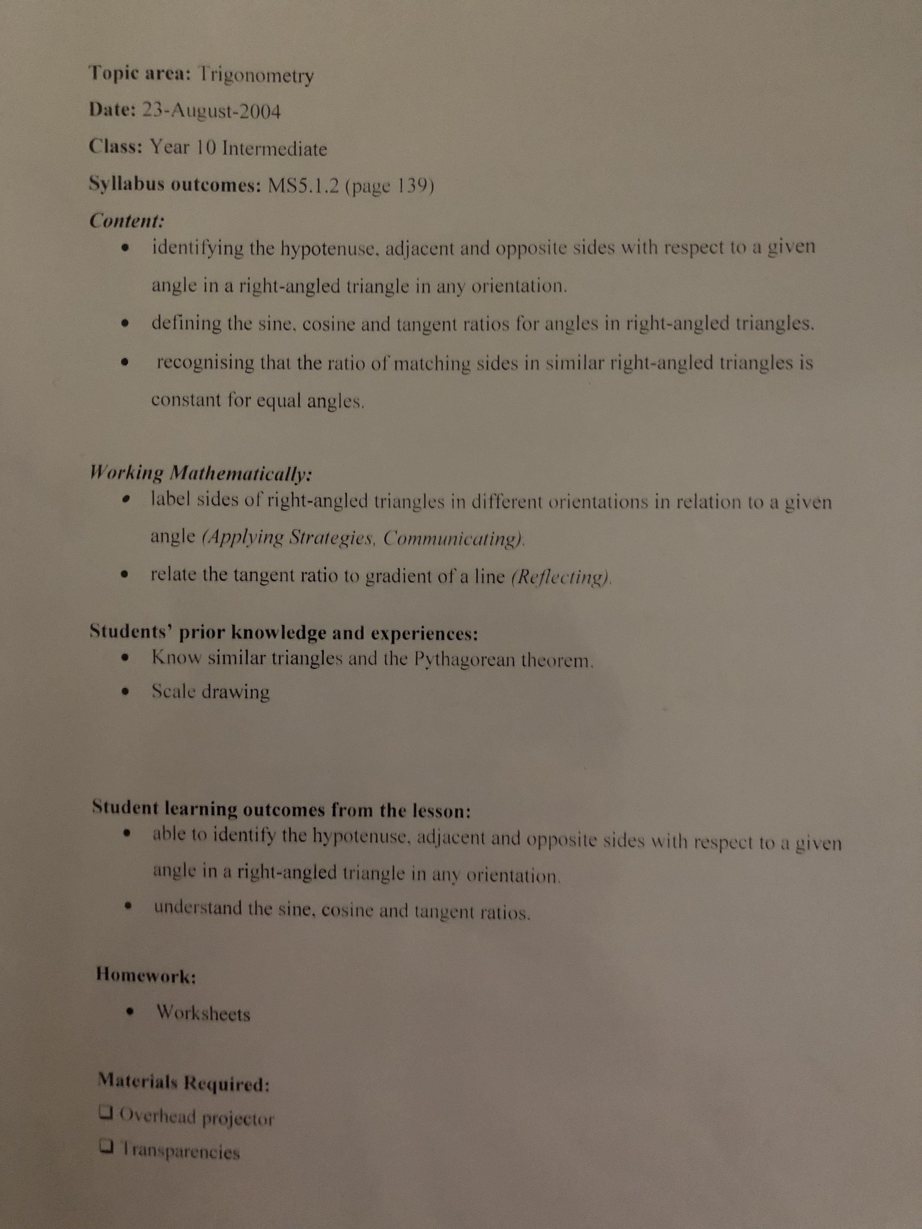 Trigonometry Lesson Plans